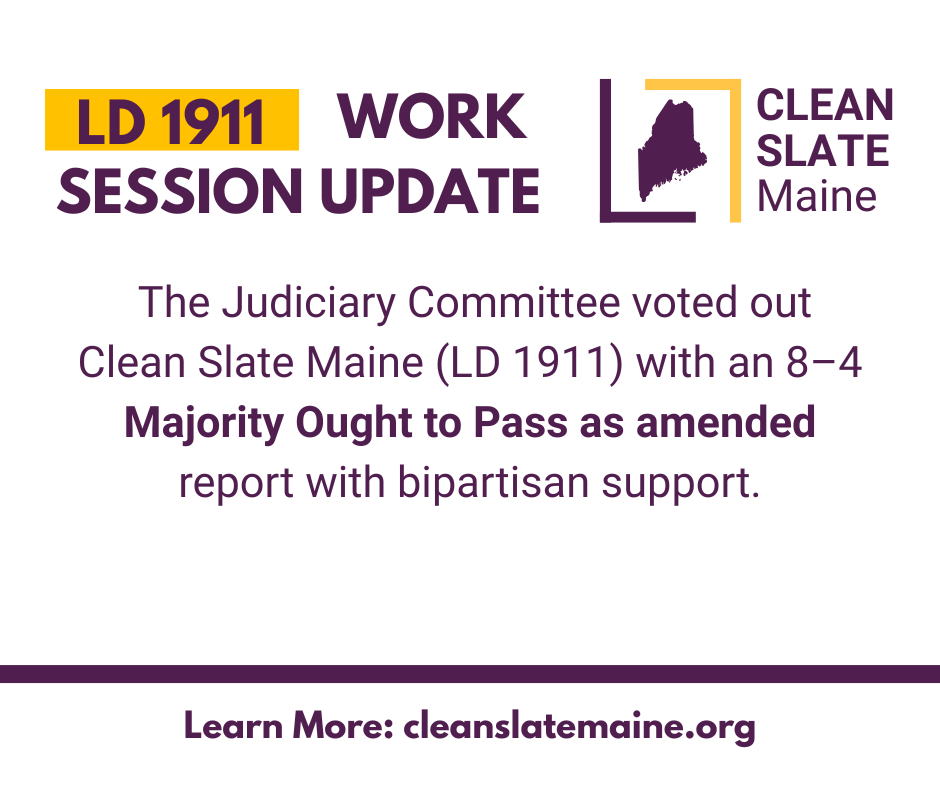 But our work is not over yet. The Maine Senate and Maine House will soon vote on Clean Slate, and we need continued advocacy to get this bill across the finish line.