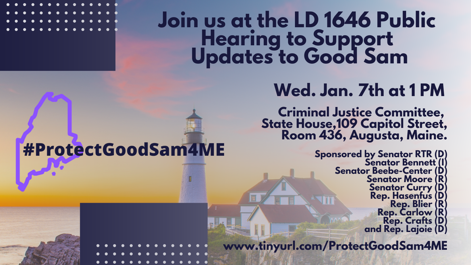 The public hearing for LD 1911 has been scheduled for January 8 at 10AM in the Judiciary Committee at the Maine State House!